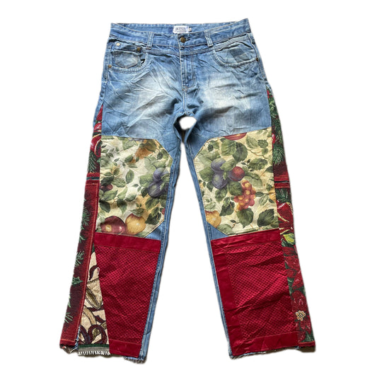 Jean Patchwork Afro-Futuriste Homme – Denim Custom Fruits & Tapisserie Rouge | Gringo Custum