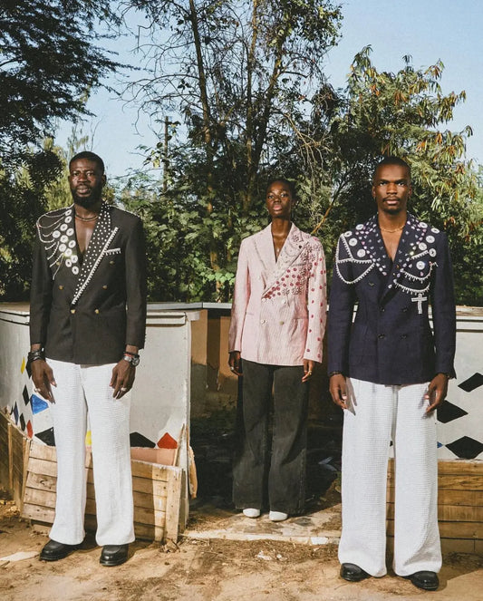 ces créations transcendent le temps et l'espace, fusionnant des éléments traditionnels africains avec une esthétique futuriste audacieuse. Les pantalons « Gringo’s Pants » ne sont pas seulement des vêtements, mais des récits vivants, évoquant des émotions profondes et des souvenirs précieux.