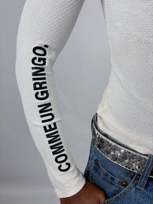 Jersey blanc oversize afro-futuriste – Gringo Custum | Design unisexe en dentelle bleue & or