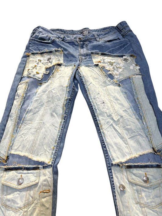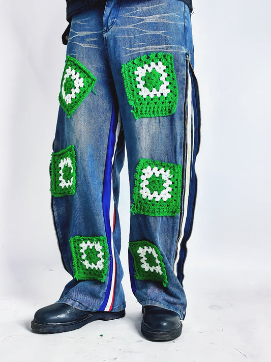Pantalon unisexe en jean recyclé avec patchs crochet – Gringo Custum