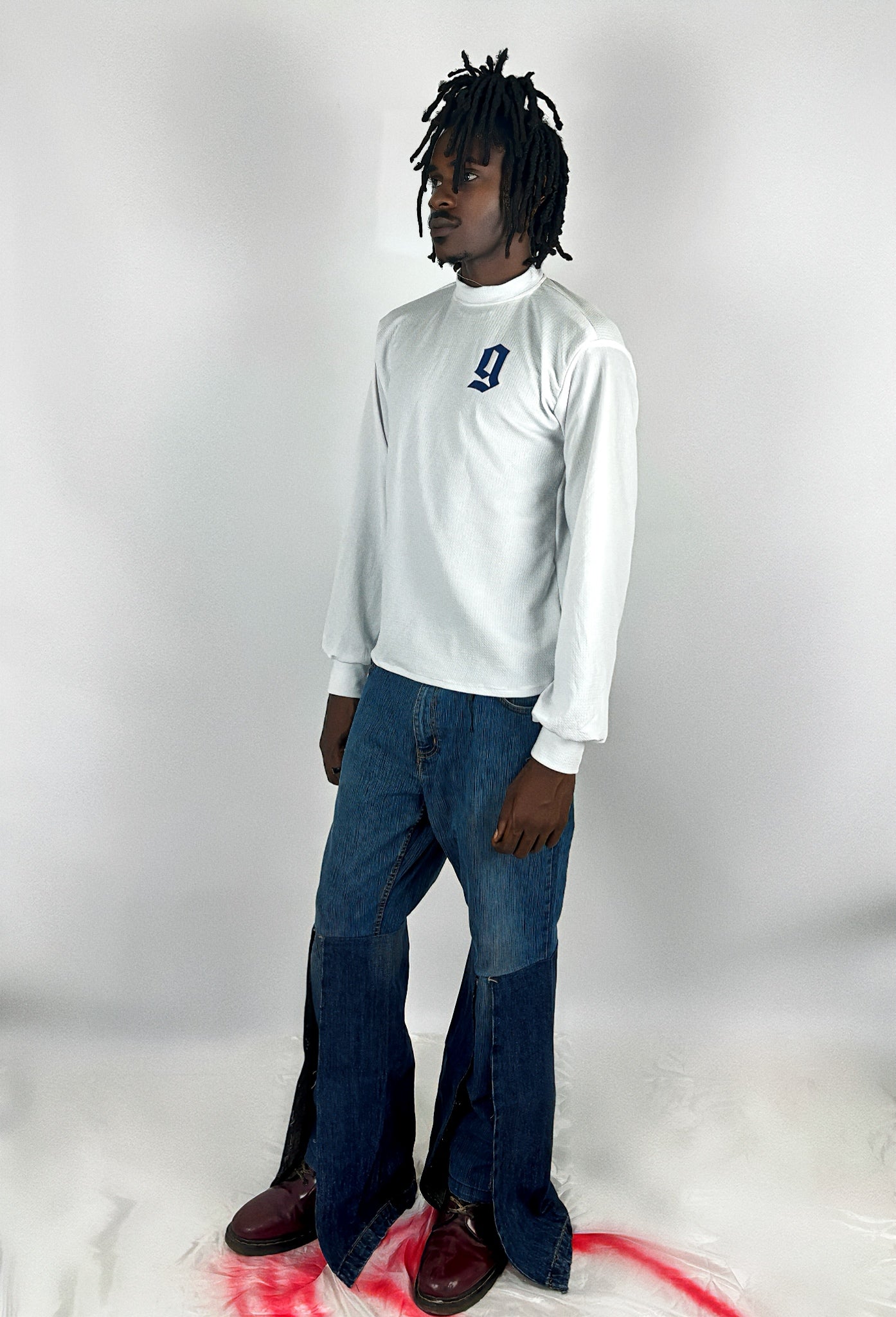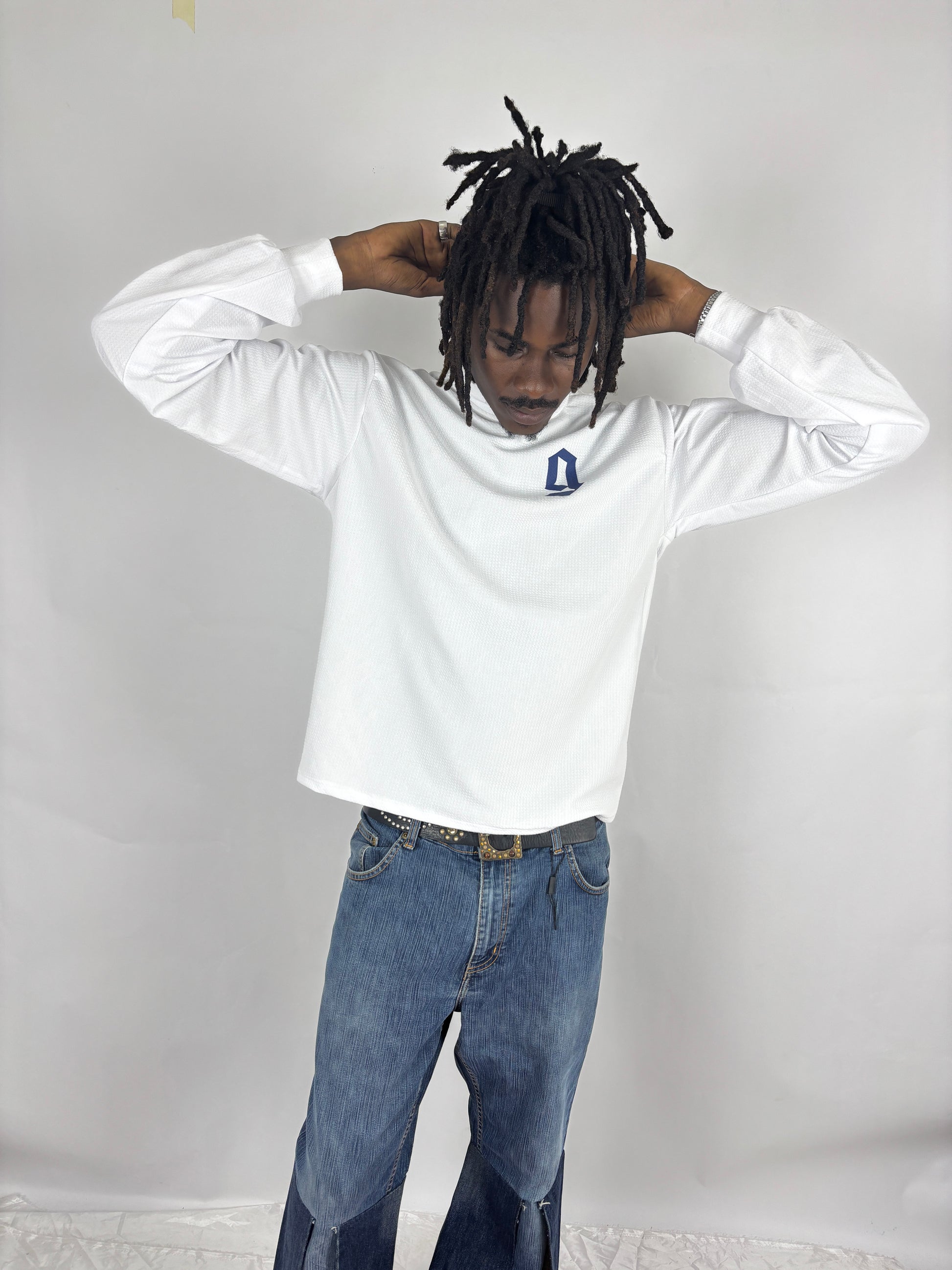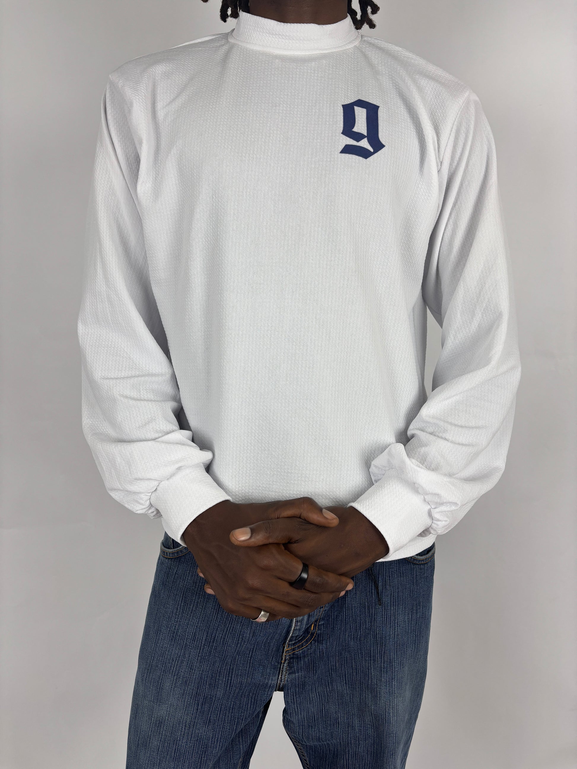 Adoptez un style épuré et contemporain avec ce haut à manches longues blanc, orné d’un logo gothique "g" sur la poitrine. Confectionné dans un tissu respirant et texturé, il allie confort et originalité. Sa coupe droite et son col montant subtil en font une pièce polyvalente, idéale à superposer ou à porter seule pour un look décontracté ou streetwear.