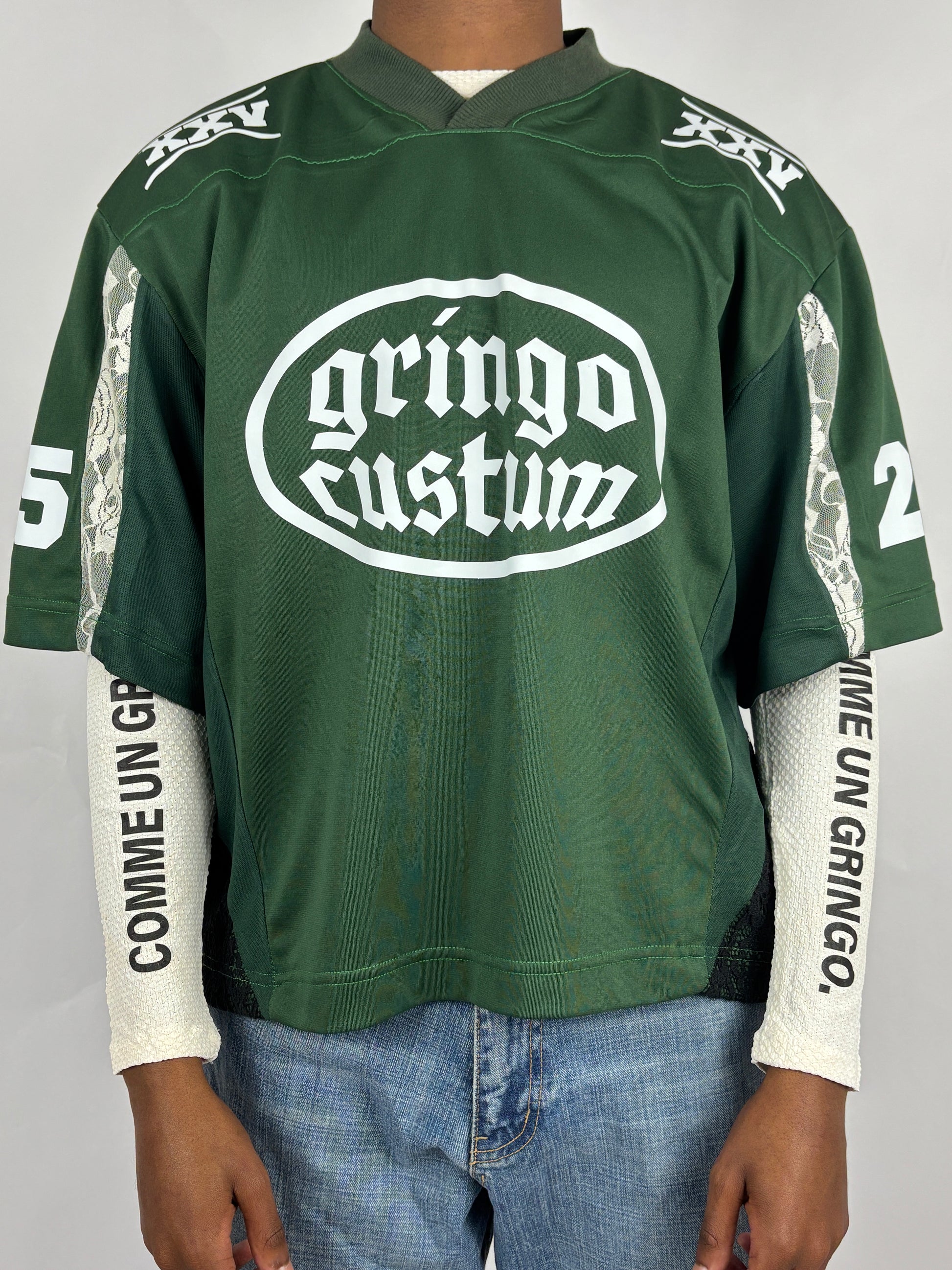 Plonge dans l’univers unique de Gringo Custum avec ce maillot streetwear vert, fusion parfaite entre héritage africain et esthétique sportive. Ce jersey oversize s’inscrit dans la capsule «Comme un Gringo », incarnant l’endurance, la persévérance et la fierté des racines.